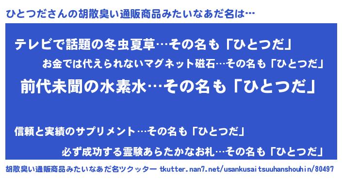 | 意味不明あだ名 | 『永久保存ひとつだ』『自称ひとつだ』 |