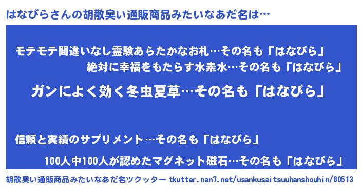 | 意味不明あだ名 | 『自称はなびら』『ペロリンはなびら』 |