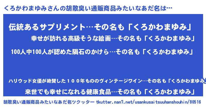| ヘコむあだ名 | 『くろっぺ』『くろかわまゆみ(笑)』 |