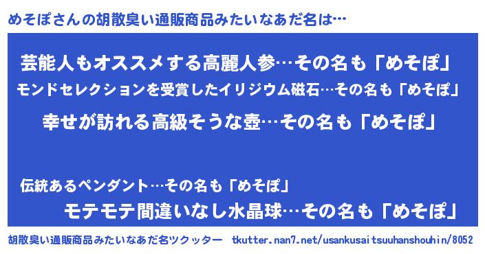 | 意味不明あだ名 | 『エリンギ科めそぽ属』『自称めそぽ』 |