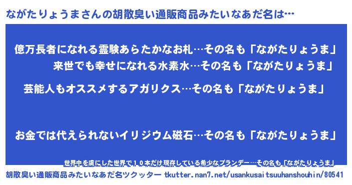 | 意味不明あだ名 | 『自称ながたりょうま』 |