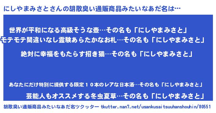 | 意味不明あだ名 | 『永久保存にしやまみさと』 |