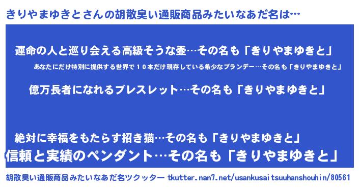 | ツイッター | きりやまゆきとさんのツイッターID『fukuyoka_star』 |