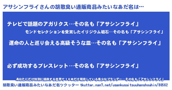 | 意味不明あだ名 | 『アサシンフライフォーエバー』 |
