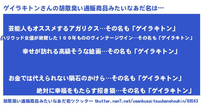 | 男性向けラノベタイトル風あだ名 | 『緋弾のゲイラキトン』 |