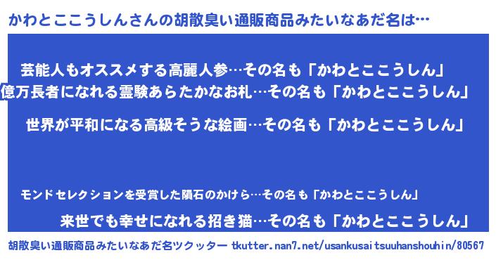 | 意味不明あだ名 | 『かわとここうしんフォーエバー』 |