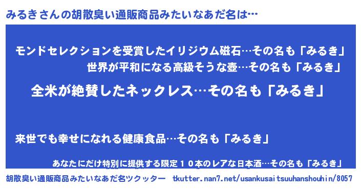 | ヘコむあだ名 | 『みるっぺ』『酢こんぶ』『みるにー』 |