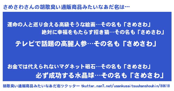 | 欧米人風あだ名 | 『トリンドルさめさわ』 |