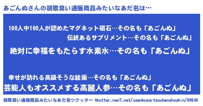 | 意味不明あだ名 | 『永久保存あごんぬ』『自称あごんぬ』 |