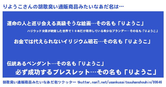 | 女子向けラノベタイトル風あだ名 | 『りようこ恋絵巻』『りようこの婚約者』 |