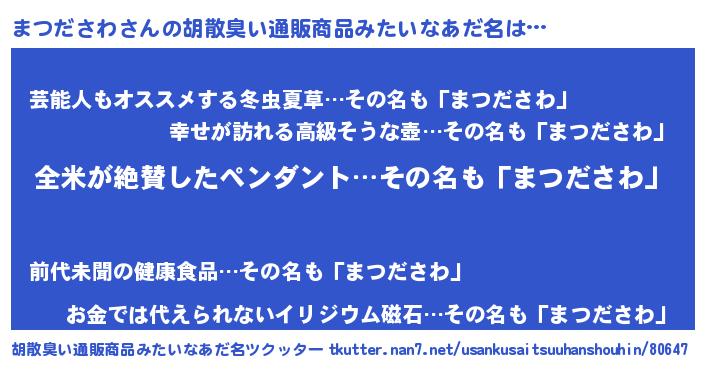 | ヘコむあだ名 | 『まつっちょ』『酢こんぶ』 |