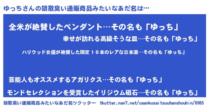 | 意味不明あだ名 | 『住所不定無職ゆっち(41歳)』 |