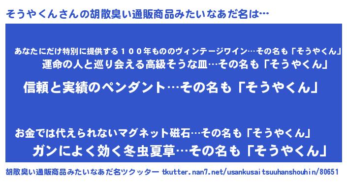 | 意味不明あだ名 | 『とにかく怪しいそうやくん』 |