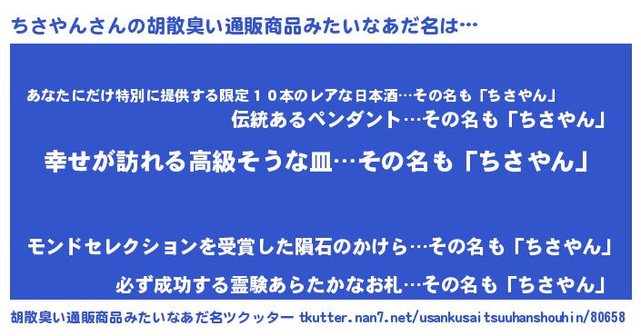 | 女子向けラノベタイトル風あだ名 | 『ちさやんの雑貨屋さん』 |