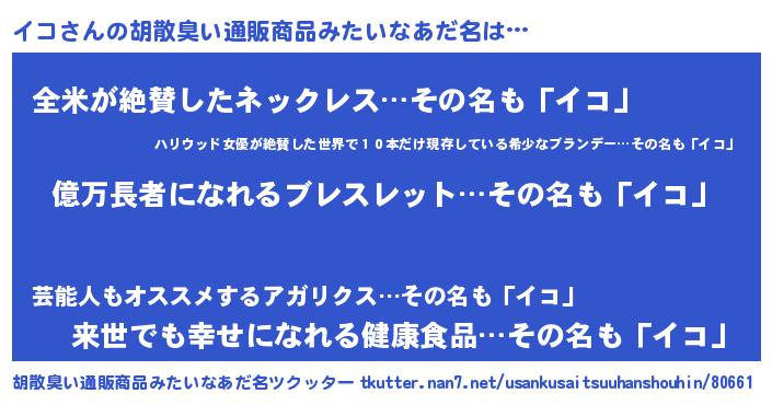 | ヘコむあだ名 | 『イコにー』『イコっちょ』 |