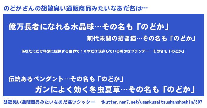 | 男性向けラノベタイトル風あだ名 | 『この素晴らしい世界にのどかを!』 |