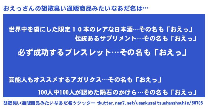 | 欧米人風あだ名 | 『マイケルおえっ』『ダレノガレおえっ』 |