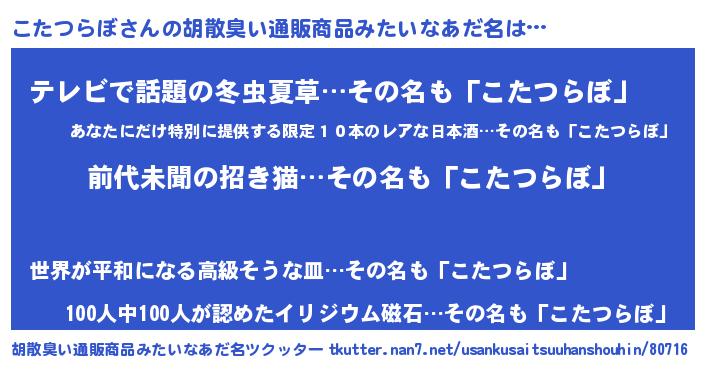 | 意味不明あだ名 | 『永久保存こたつらぼ』『自称こたつらぼ』 |