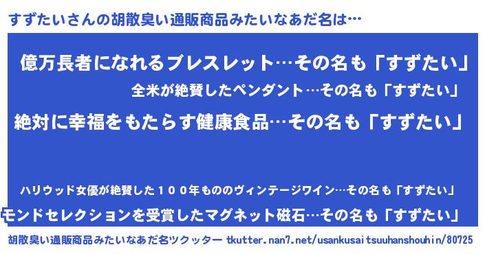 | 男性向けラノベタイトル風あだ名 | 『すずたいという概念が存在しない退屈な世界 』 |