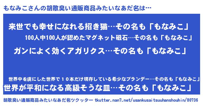 | 意味不明あだ名 | 『自称もなみこ』『永久保存もなみこ』 |