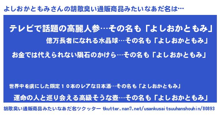 | ヒーロー風カッコイイあだ名 | 『友情の使者よしおかともみ』 |