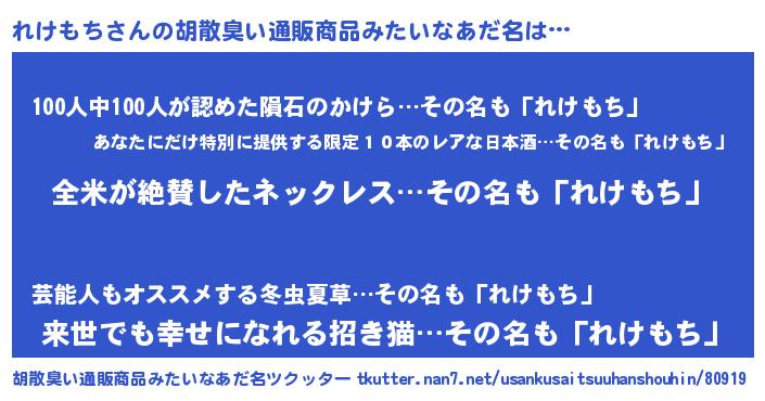 | 肩書あだ名 | 『れけもち塾長』『れけもち助教授』 |