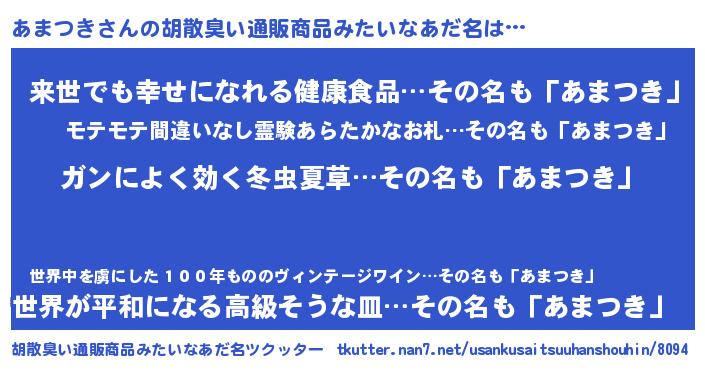 | 女子向けラノベタイトル風あだ名 | 『あまつきなんてお断りですっ。』 |