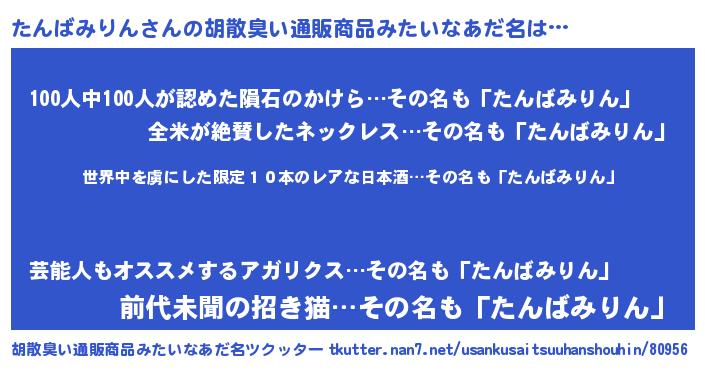 | ヘコむあだ名 | 『たんばみりん(笑)』『たんぷりん』 |