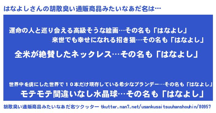 | 意味不明あだ名 | 『とにかく怪しいはなよし』 |