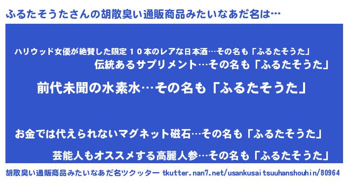 | ヘコむあだ名 | 『ふるたそうた(苦笑)』『ふるっぺ』 |