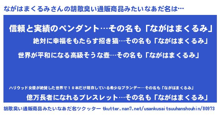 | 欧米人風あだ名 | 『ながはまくるみクリステル』 |