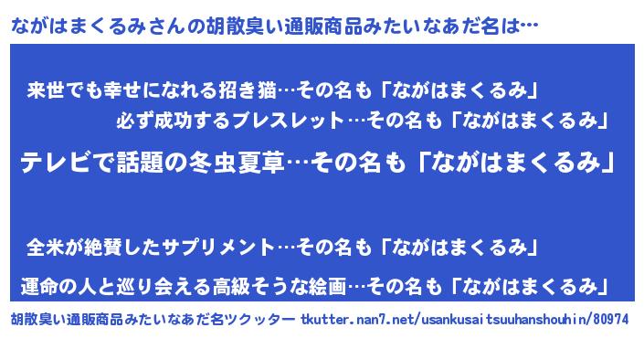| ヘコむあだ名 | 『ながはまくるみ(震え声)』『なまこ酢』 |