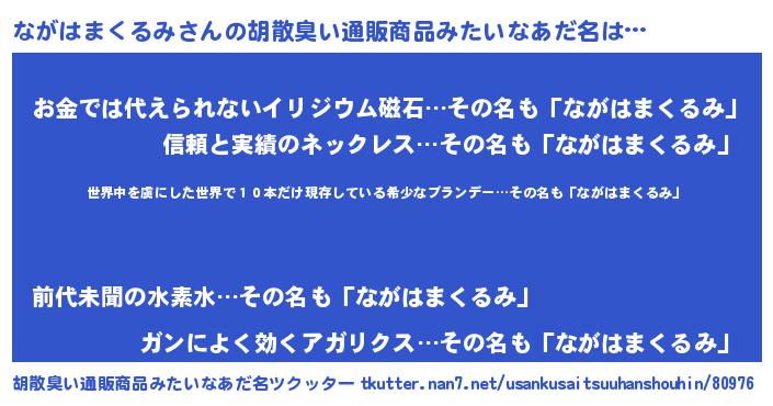 | ヘコむあだ名 | 『ながっぺ』『ながはまくるみ(笑)』 |