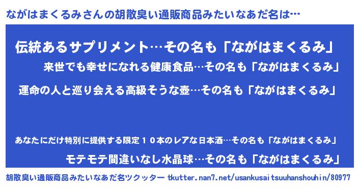 | 欧米人風あだ名 | 『ながはまくるみクリステル』 |