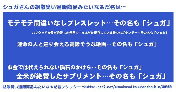 | 恥ずかしいあだ名 | 『シュっちょ』『プリティーシュガ』 |