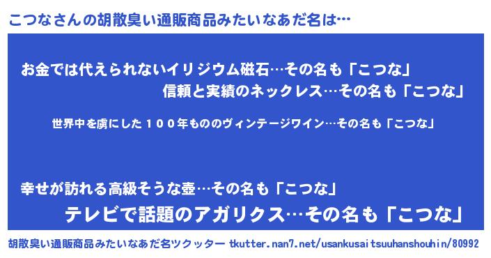 | ヒーロー風カッコイイあだ名 | 『仮面コツダー』『正義の使者こつな』 |