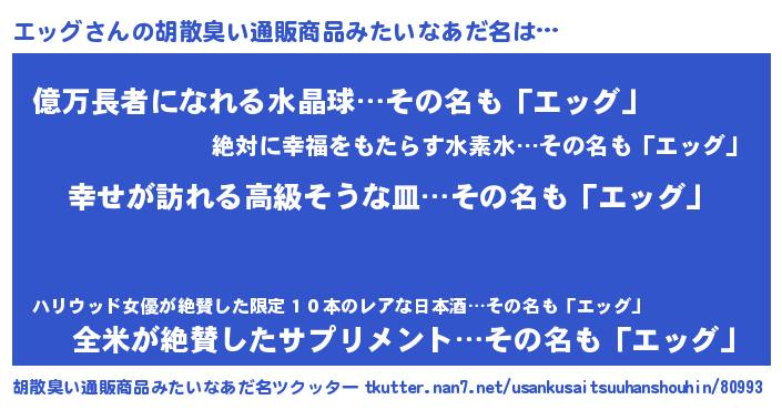 | 欧米人風あだ名 | 『アンジェラ・エッグ』『マイケルエッグ』 |