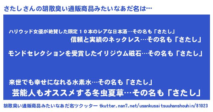 | ヘコむあだ名 | 『さたっぺ』『さたし(爆)』 |