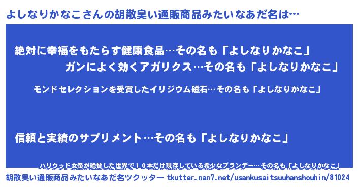 | 意味不明あだ名 | 『眠気覚ましガムよしなりかなこ味』 |