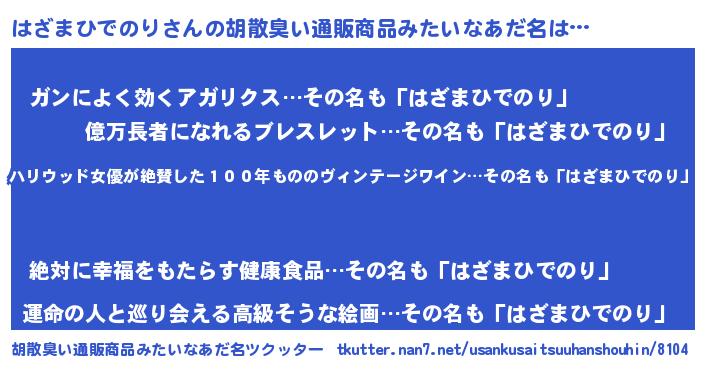 はざまひでのりさんの胡散臭い通販商品みたいなあだ名をツクッター!