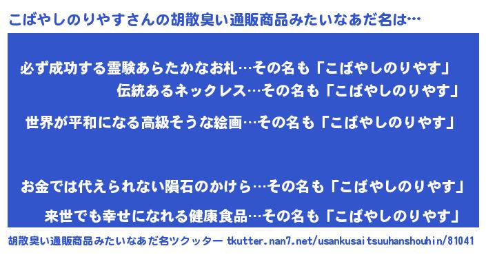 | 男性向けラノベタイトル風あだ名 | 『転生したらこばやしのりやすだった件』 |