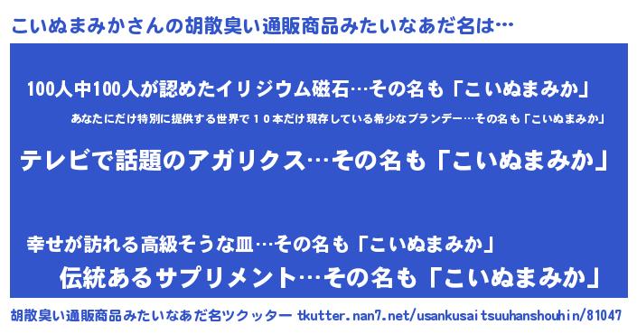 | 欧米人風あだ名 | 『トリンドルこいぬまみか』 |