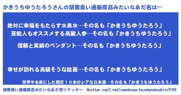 | 意味不明あだ名 | 『とにかく怪しいかきうちゆうたろう』 |
