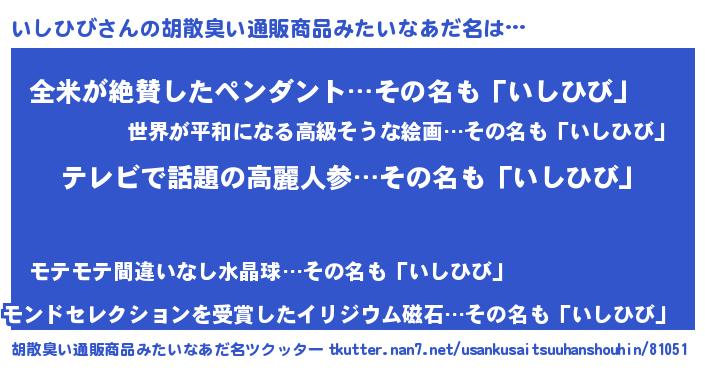 | 意味不明あだ名 | 『自称いしひび』『ヨモギ科いしひび属』 |