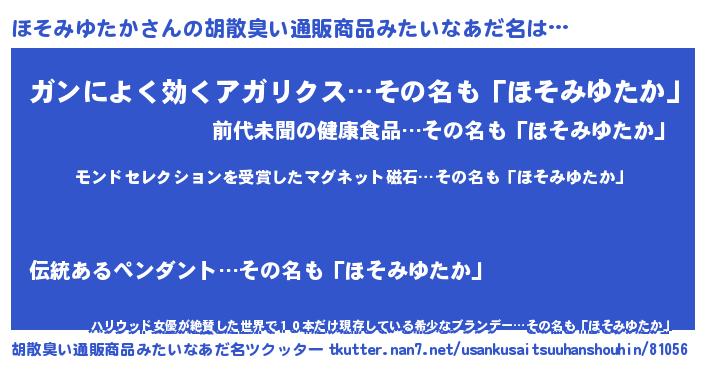 | ヘコむあだ名 | 『ほそみゆたか(笑)』『ほそっ子』 |