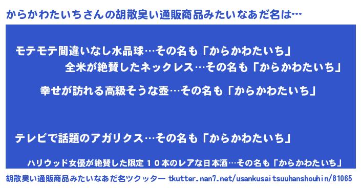 | 男性向けラノベタイトル風あだ名 | 『はたらくからかわたいちさま!』 |