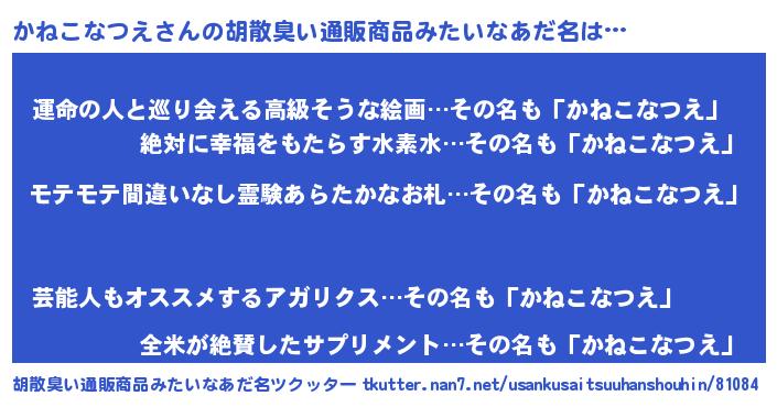 | 意味不明あだ名 | 『ペロリンかねこなつえ』 |