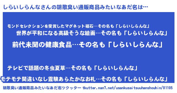 | 意味不明あだ名 | 『ニラ科しらいしらんな属』 |