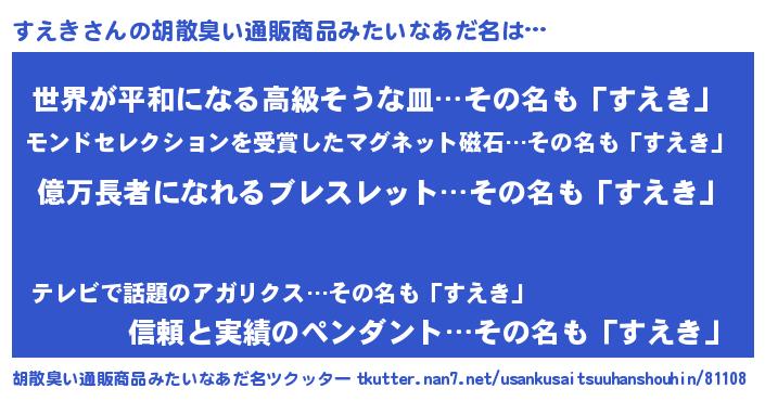 | 意味不明あだ名 | 『ペロリンすえき』『すえきフォーエバー』 |