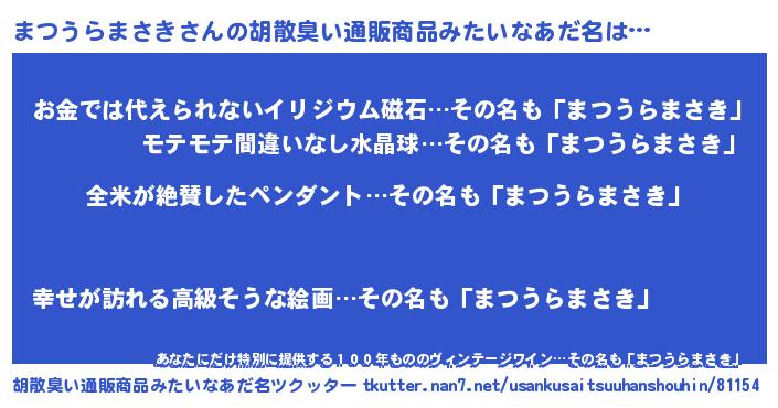 | ポケモン風あだ名 | 『メロマッツ』『ヒマツウラマサキ』 |